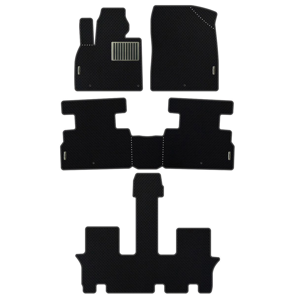 EVA Fußmatten, die Sie bei uns kaufen können, sind sehr leicht zu reinigen – einfach herausnehmen und ein paar Mal ausschütteln, um Schmutz und überschüssiges Wasser zu entfernen. So bleiben Ihre Hosen, Schuhe und der Innenraum Ihres Autos immer sauber! Ein weiterer Vorteil von EVA Auto Fußmatten Kia Telluride (2019-…) ist die perfekte Passform: Sie werden an den originalen Befestigungspunkten des Herstellers montiert. Außerdem werden die Matten mit speziellem Klettverschluss fixiert, damit sie beim Fahren nicht verrutschen.